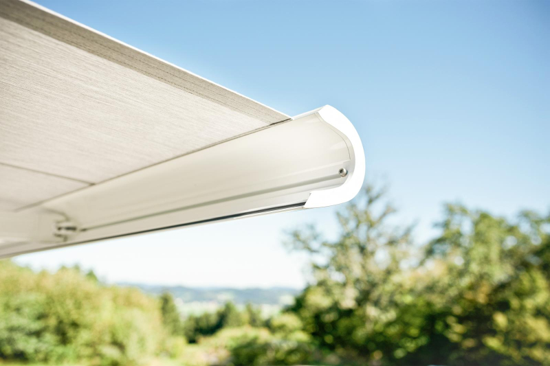 CLEO 7040 HELLA s maximální šířkou sedm metrů a výsuvem až do čtyř metrů poskytuje velkorysý stín, zároveň však působí elegantně a svěže. Díky oválné kazetě ji lze i navzdory velikosti namontovat do malého prostoru. Pro maximální komfort jsou k dispozici větrná a sluneční čidla i senzory deště. Volán Varioplus na přání chrání navíc před zapadajícím sluncem, větrem a nežádoucími pohledy.