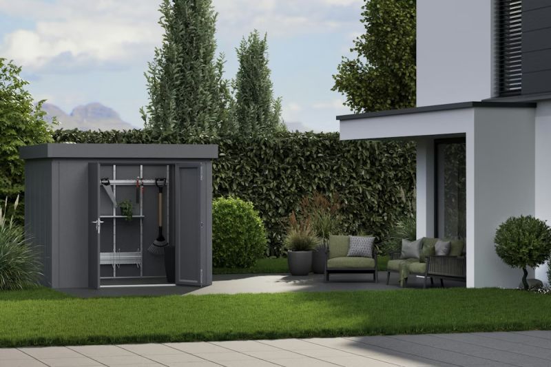 Zahradní domek na nářadí Juno s plochou střechou v designové variantě „Modern“